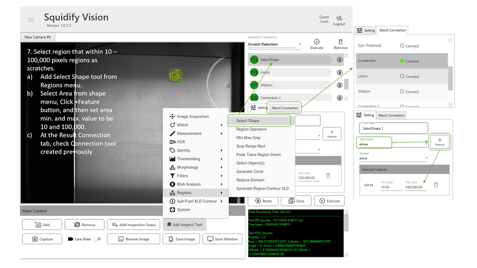 To create a scratch inspection, follow 10 steps to make sure that there are not defect products sent to the downstream process.
